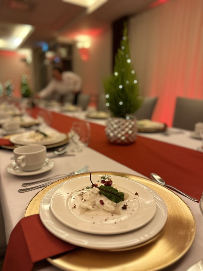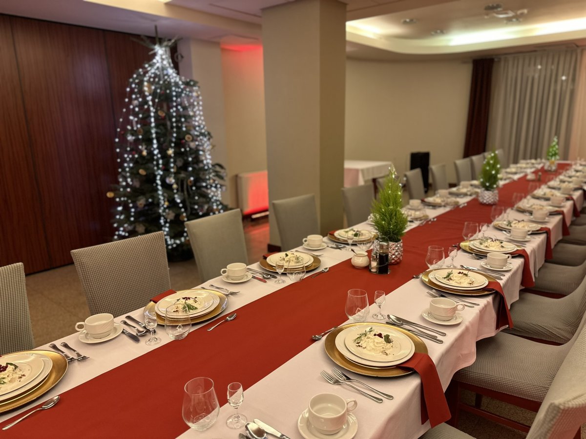 Dbamy o każdy szczegół – od aranżacji stołów po przebieg wieczoru – aby Państwa spotkanie było spokojne, dopracowane i zapamiętane na długo. Sale są starannie udekorowane, w całym obiekcie czuć świąteczną atmosferę, a w menu obok klasycznych potraw wigilijnych pojawiają się także dania o bardziej uniwersalnym charakterze.
